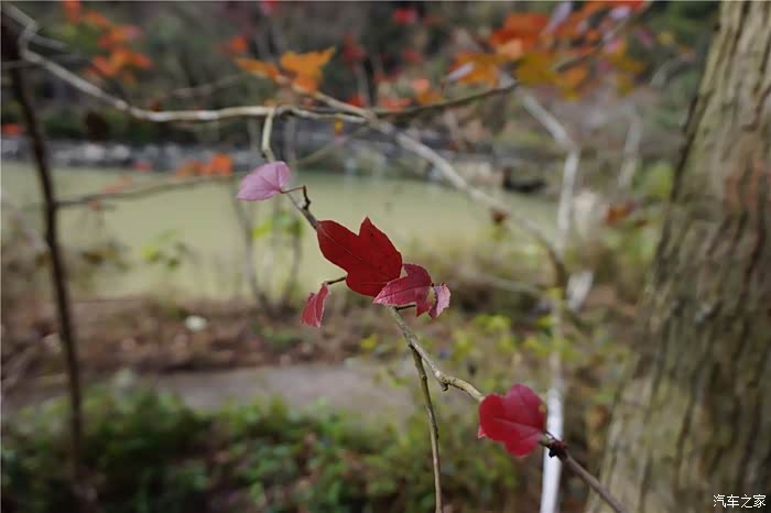 这到了古东森林瀑布群,最大的收获是这里有一处满种枫树的山林,每年到了深秋,也就是大概十一月的下旬,这里层林尽染,红艳艳的枫叶连绵不绝,景致的壮美,是在广西别的地方找不到的。