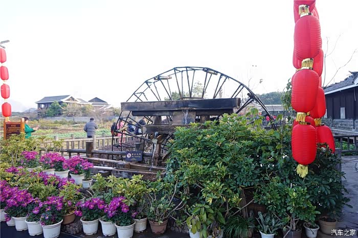 一架巨大的水转筒车,吱吱呀呀地摇着岁月,也吟唱乡村古老的歌谣。放眼望去,远方群山,村树含烟,阡陌纵横,屋宇错落,宛若陶渊明笔下“芳草鲜美,落英缤纷”“有良田美池桑竹之属”的桃源画境。