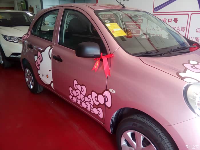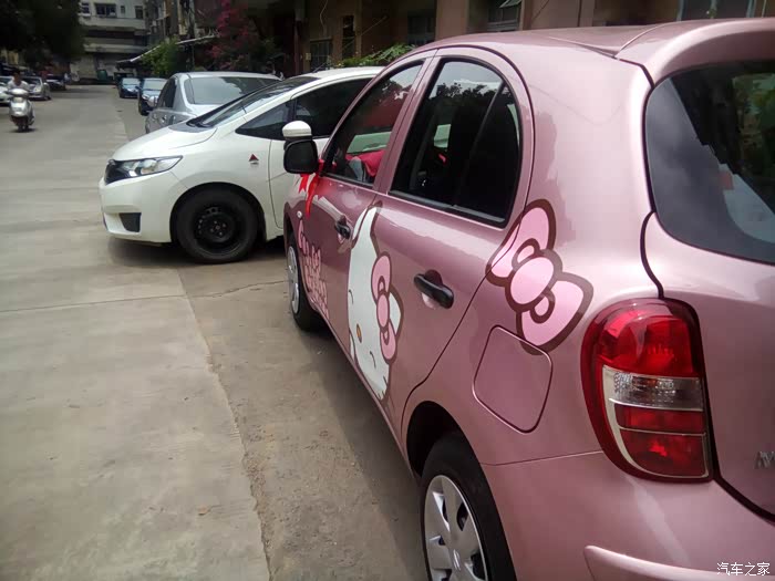 玛驰已经不是量产车,本地买车必须得订车,还得等车3个月,正好老婆在4S上班,就叫他在其他地方有没有现货,展车也行,调货一台就好了,打听了一圈本省首付正好有一台展车,而且这台玛驰正好是粉色的,而且这台还贴有拉花,还是自动档,(我的飞度手动的,老婆开不惯还是新手)二话不说买买买,哈哈哈哈