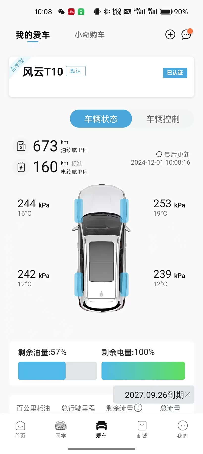 我10月10日买的风云T10,手机上160显示的是标准里程,车机上有三个里程可供选择:210、标准里程160、动态里程150。