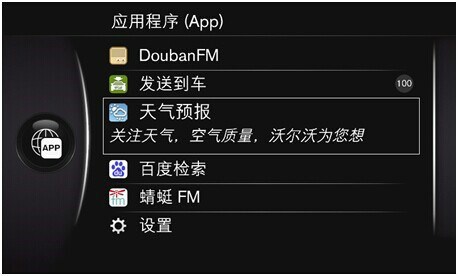 值得一提的是,针对中国市场,沃尔沃智能在线不仅提供了百度、豆瓣、蜻蜓等符合中国用户使用习惯的应用软件,天气预报中还增加中央气象局和环境监测局实时发布的AQI空气质量指数和PM 2.5监测功能,为用户的健康出行保驾护航。