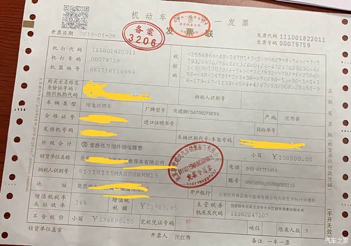 ⊙?⊙!原来上海的厂家,把合格证信息录入错误!发动机号这项写错了(虽然电车没有发动机吧)