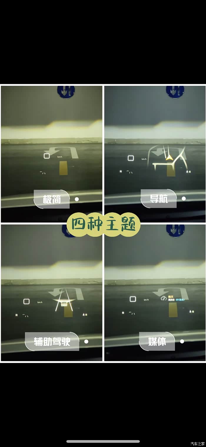 晚上效果可以参考图二,不会很刺眼。HUD亮度应该是自动调节的,不过似乎没找到可给用户手动微调的地方显示内容