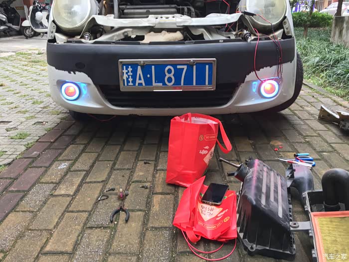 因早有打算,所以接受了坛车友“X808”的建议,更换了新的大灯总成+白色LED大灯泡!灯壳之所以发黄得厉害,就是相信了“灯壳修复液”,诚然,刚喷好的时候,确实锃新瓦亮的,很透澈。只是随着时间的推移,加上日晒雨淋,迅速泛黄泛蒙成现在这样了。
