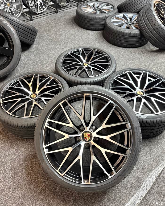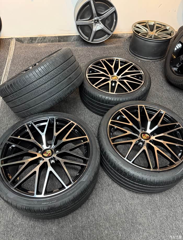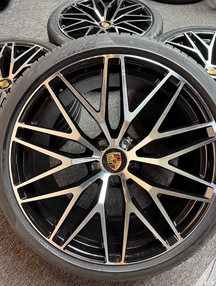 准新22寸保时捷卡宴轮毂轮胎,保时捷原厂钢圈,几乎全新状态!这套轮毂直径22英寸,孔距5x130,适合追求高性能和精美设计的车主。