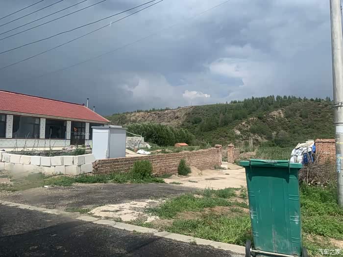 虽然还没出河北,但天气就变得奇怪了,儿子要方便,就随便找个偏僻的路边停下吧,能看出外面正在下着不小的雨么。