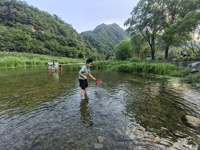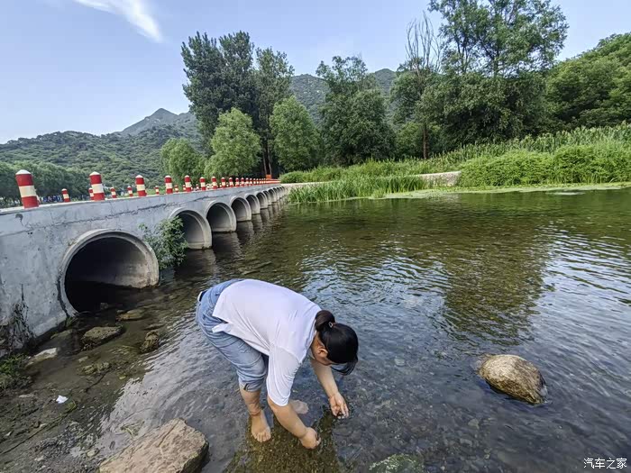 安顿下来,时间还早,我有一个习惯,不管去哪,我一定要去景点周边一些自然的地方转转,看看当地原原本本的风土人情,开车出来,没有目的的慢慢的逛,还真的找到了一个风景宜人的地,在慕田峪村子西南大概五公里左右,我天生喜欢水,就沿着有溪流的地方走,这个地方叫不上名字,就是很本土的一条溪流,两岸有稀稀疏疏的村落,部分已经做成了民宿,但原貌没有变。