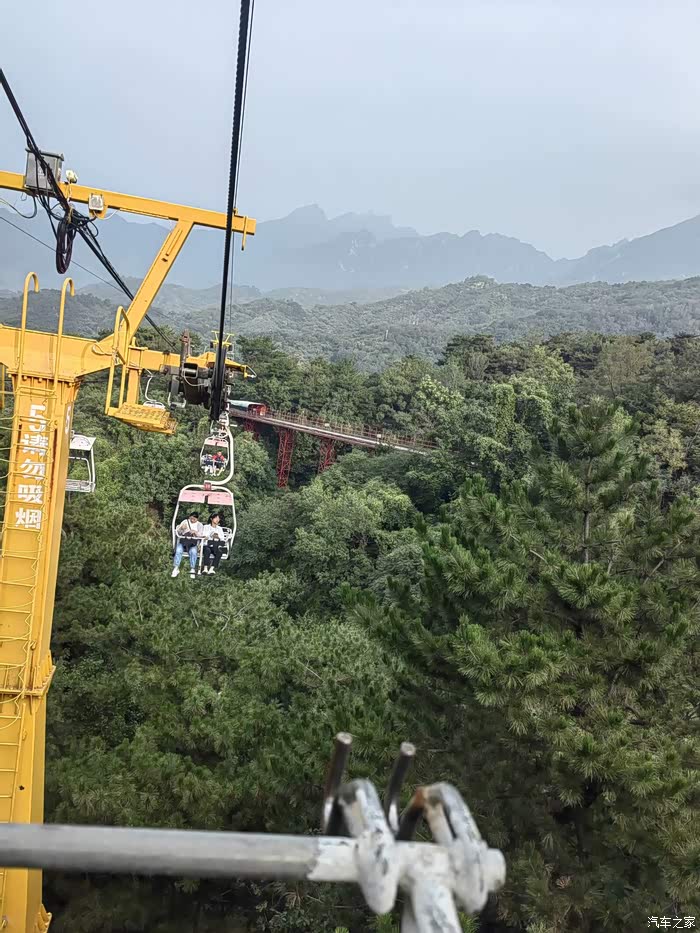 就是这一段,缆车周边是敞开的,悬在几十米高的半空,手哆嗦着给后面的娘俩拍了一张