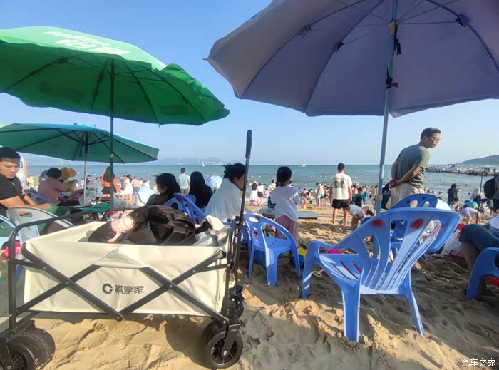 这里非常适合周末海边野餐,沙滩上有扫码付费的沙滩遮阳伞可以租,一把 50 元。我因为没带帐篷,所以租了一把,但后来发现,下午太阳斜射时,租的遮阳伞遮挡效果并不好,真心建议大家最好自带帐篷,这样不仅能节省费用,还能更自在地享受海边时光,不用花冤枉钱。我们提前准备了下午茶,找了一处合适的沙滩位置,坐在遮阳伞下,铺上野餐垫,一场惬意的海边野餐就这样开始了。微风轻拂,海浪拍岸,孩子们在沙滩上自由玩耍,我们在遮阳伞下享受着美味的下午茶,这种悠闲的时光真是美得不得了。
