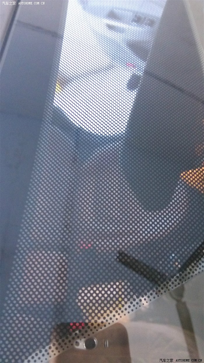 这是我20号报保险的时候拍的,看见黑网上面的两个小白点吗?那就是石子的罪证,在外面看不出来裂痕,等我上从车内拍的照片。