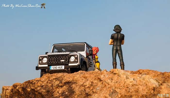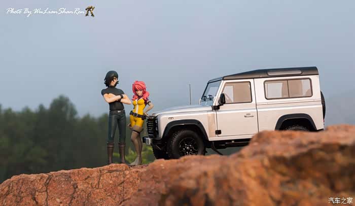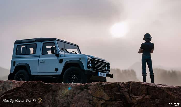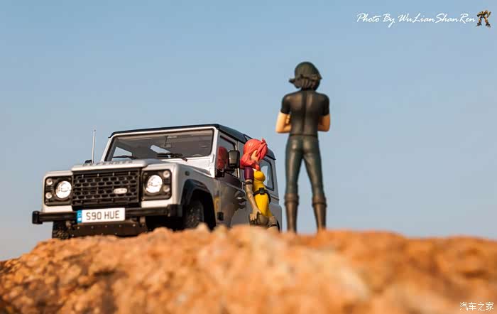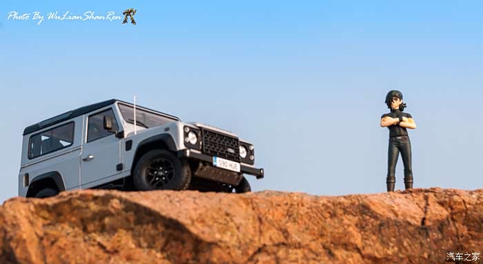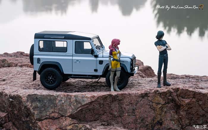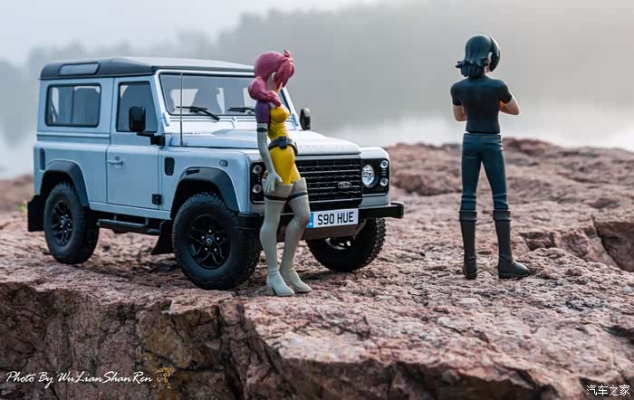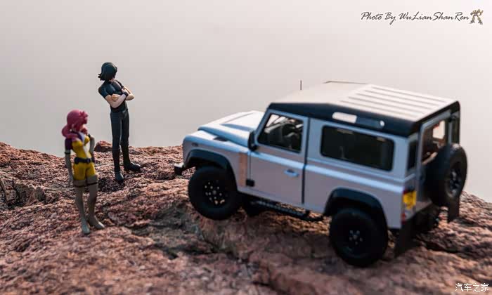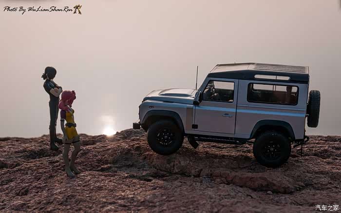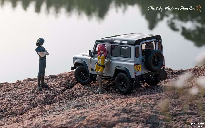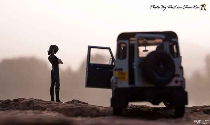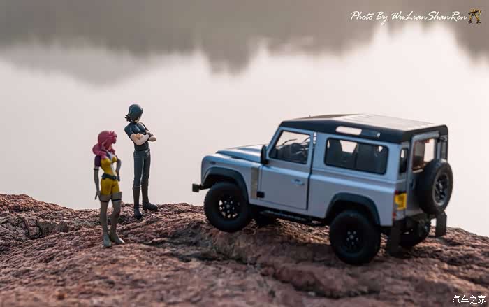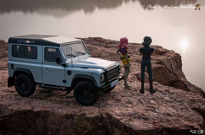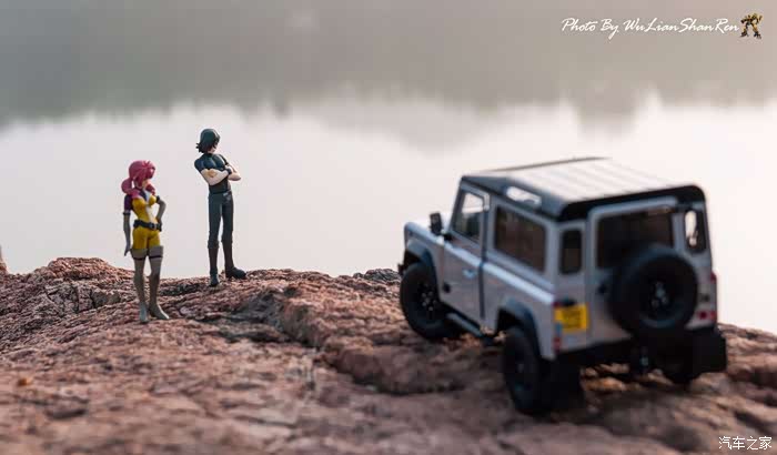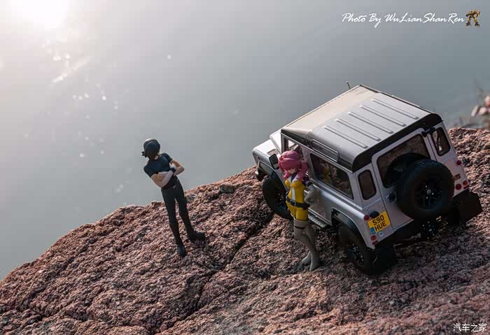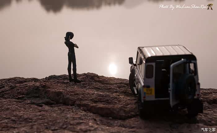 天涯这个题材俺应该拍过去2年了,当时是因为俺听了爱乐团的《天涯》这首歌。一首可以打动你的歌。循环播放N遍也不厌烦。一个模型摄影党人,在听着音乐的时候会自然不自然的想到用模型去实现头脑中的幻境。这也许就是创意的灵感吧.......天涯要有山要有水吧,当年的选址也是俺今年拍摄的地方,山东省日照市五莲县松柏镇松月湖畔的一块大岩石。这个地方有山,有水,然后今年俺又特意选择了早晨去拍。因为这个时候可以拍到太阳。模型的选择,由于是拍天涯题材当然选择硬派越野车了,上一次俺选择了美驰图的悍马H2(这模型的做工一般,车窗玻璃都没有),其实当时是真没的选,那个时候俺连一个像样的原厂SUV模型都没有。而今俺硬派模型俺也有好多可以选择了(奔驰G500,北京BJ80,北京BJ40,北京BJ40L,哈弗H8等),这次山人选择了做工最值得赞的似真AR路虎卫士S90出镜,俺喜欢它这小天线。这么小的部件,竟然做到了金属且可以伸缩。人偶还是使用了上次的两个人偶,但这次俺尽量减少正面拍摄。因为人偶的脸部细节,真的不敢恭维,模型都这么逼真了,不想因为人偶的细节煞了风景,但是3.75寸人偶的做工都那个样,经不起推敲。