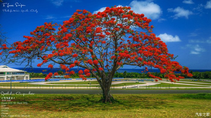 Saipan的蓝天白云珊瑚海火焰树鸡蛋花,我们来咯,哈哈哈, 其实珠三角也有鸡蛋花与火焰树,但是由于气候的原因,开的花都不如塞班来得大与多。