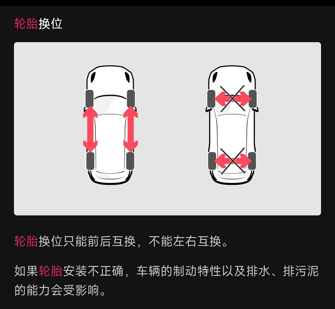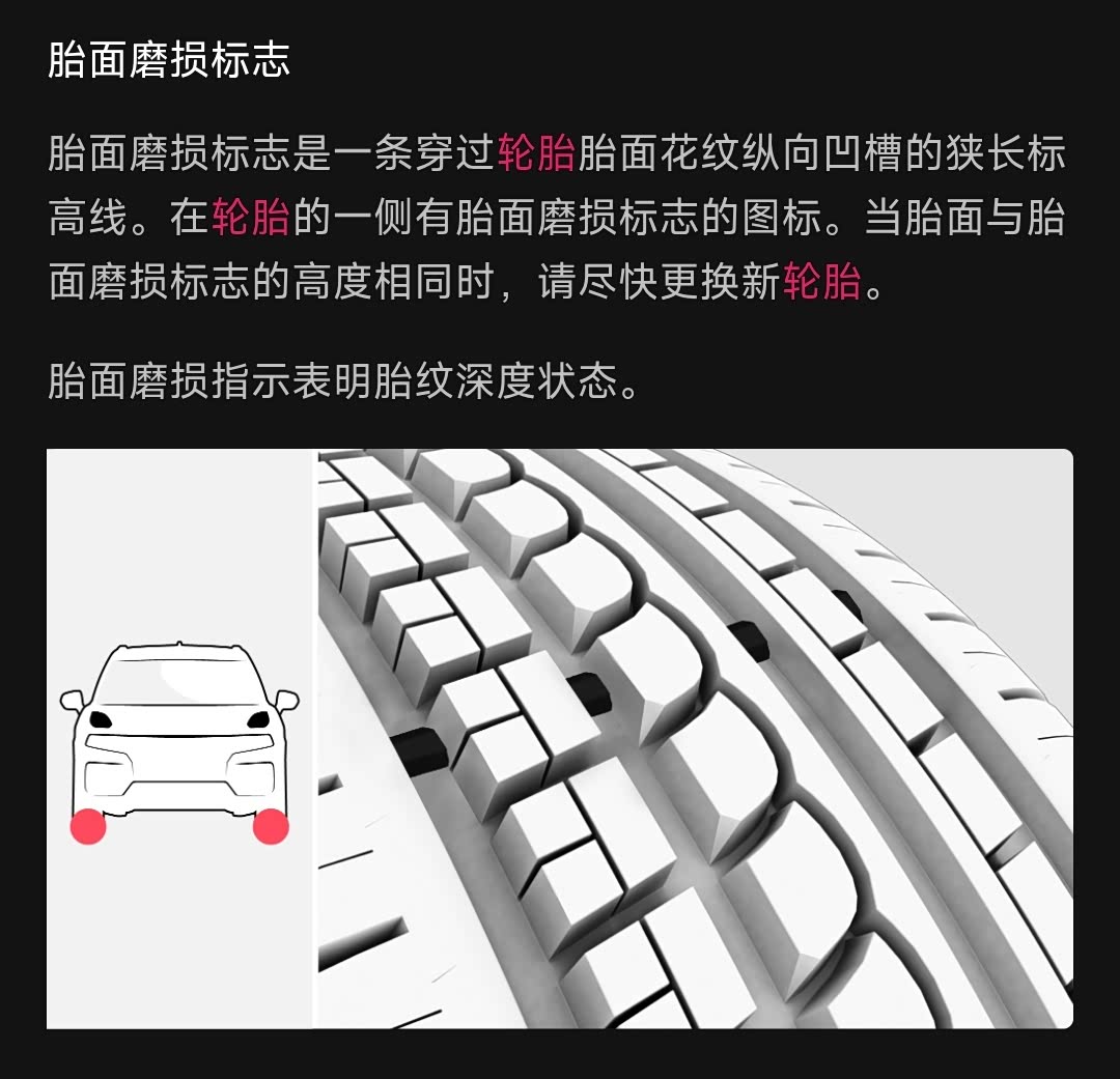 首先来聊一下什么时候换轮胎。以正常使用来说,在轮胎凹槽里,有一个正方形的橡胶凸起,这个就是轮胎厂家设置的安全值,轮胎正常磨损到这个安全块和轮胎表面齐平的时候呢,就应该考虑更换了,从我的使用情况来看,轮胎使用里程达到6万5的时候,几乎就到了更换界限了,而且,每次保养的时候,售后师傅也会给测量轮胎并告知。对于一些每年跑个几千或者1万左右的车友们,几乎是磨不到安全块位置的,那么,大家要重点关注轮胎老化裂纹,这种情况建议也在用车五六年的时候更换轮胎,虽然里程短磨损轻,但是老化爆胎也是一个很危险的因素,大家也要重点关注。另外,在平时轮胎换位也是有要求的,不能随便换位。