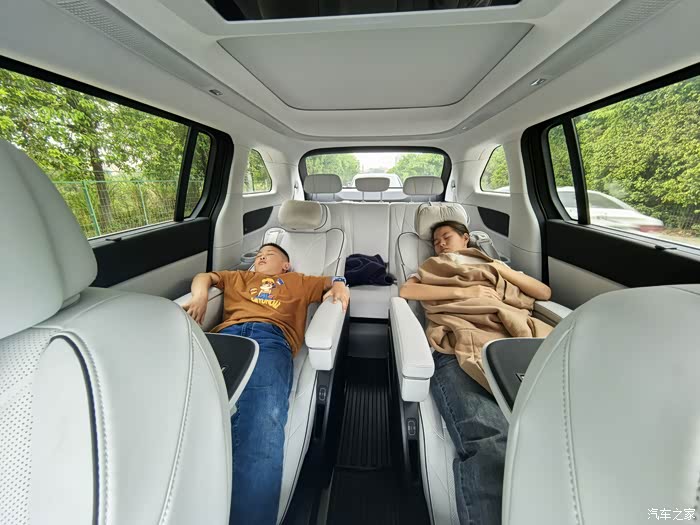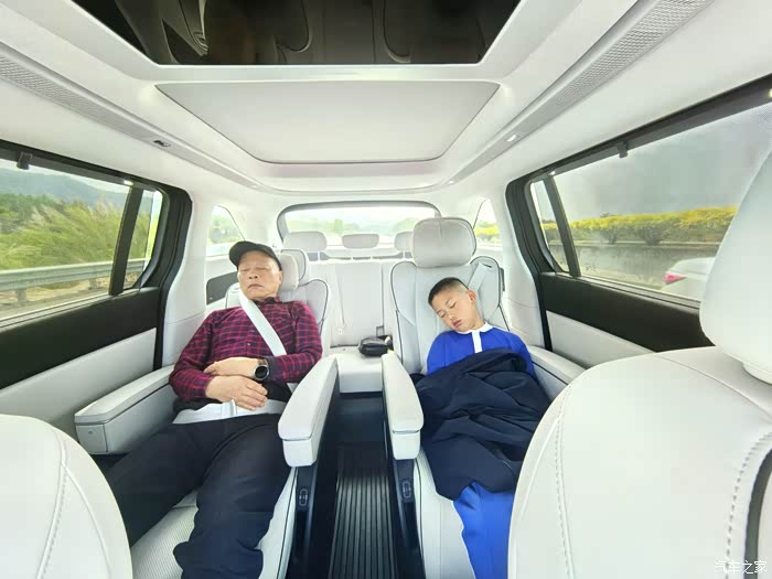 路上将二排座椅移到最后,腿部空间相当宽敞,爷孙俩一路睡过去,挺好!