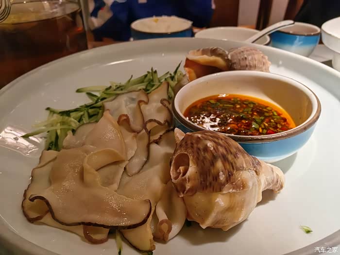 冰镇花螺,配上带芥末的汤料,味道很鲜美!