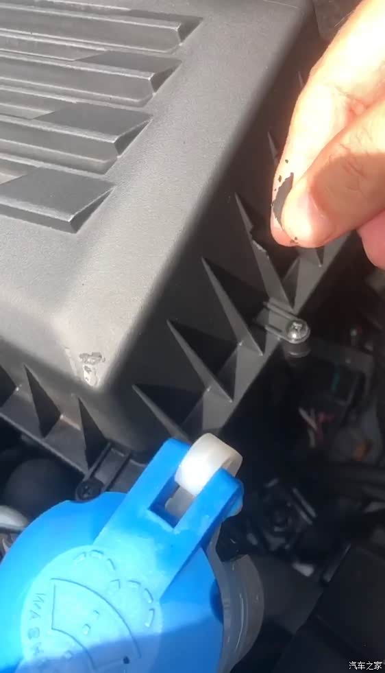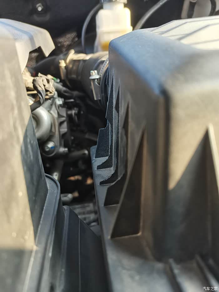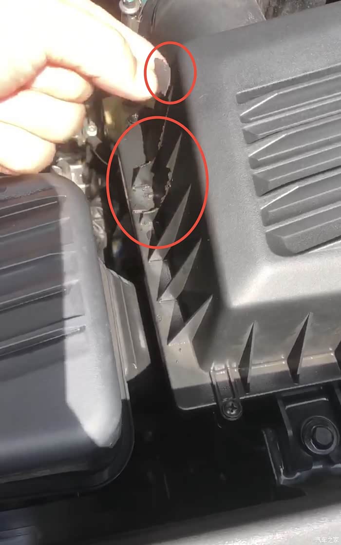 2、另外一种情形就是,因为空气格整体用料较差,而豪越的发动机仓高温环境差,塑胶老化快,易脆化掉渣,这种情况我也遇到了,而且我就是用这条理由理赔成功的。空气格外表面的很多加强筋长期高温用手轻轻一碰就会脆裂掉渣,直接开去4S店要求索赔换新,都不带废话的。不过新配件的材质有没有改善就不知道了。