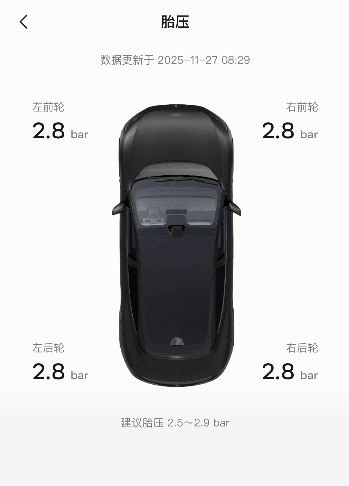 胎压:冬季影响续航表现的还有胎压,毕竟阿维塔06车也重冬季胎压也会热胀冷缩跟着气温降的快,所以建议冬季胎压打到2.7-2.8左右最佳,也尽量将4个轮胎的胎压保持一致,这样不仅能降低一点能耗还能避免轮胎磨损不一致及爆胎的情况。