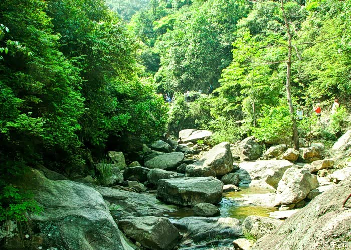 牯牛降作为国家级森林生态类型的自然保护区,保存有大面积的中亚热带原始森林和珍稀动植物资源。因其山形酷似一头牯牛顶天立地而得名。牯牛降春华、夏绿、秋彩、冬莹,四季变幻,景色各异,奇松、怪石、飞瀑、云海和佛光被誉为牯牛降“五绝”。这次小长假去,正是春意盎然时节,风景很不错!其实牯牛降只有一个,坐落在石台、祁门两县交界处,两县各自开发形成了风格各异的两个景区。祁门牯牛降景区坐落在一个长达五公里左右的大峡谷内,两边是高山峭壁,谷内溪流潺潺。景区的景色几乎全天然,唯独景区中间的一个小湖面是人工筑坝形成的。这坝顶溢水形成的几十米落差就是牯牛瀑布,这人工湖就是牯牛湖。