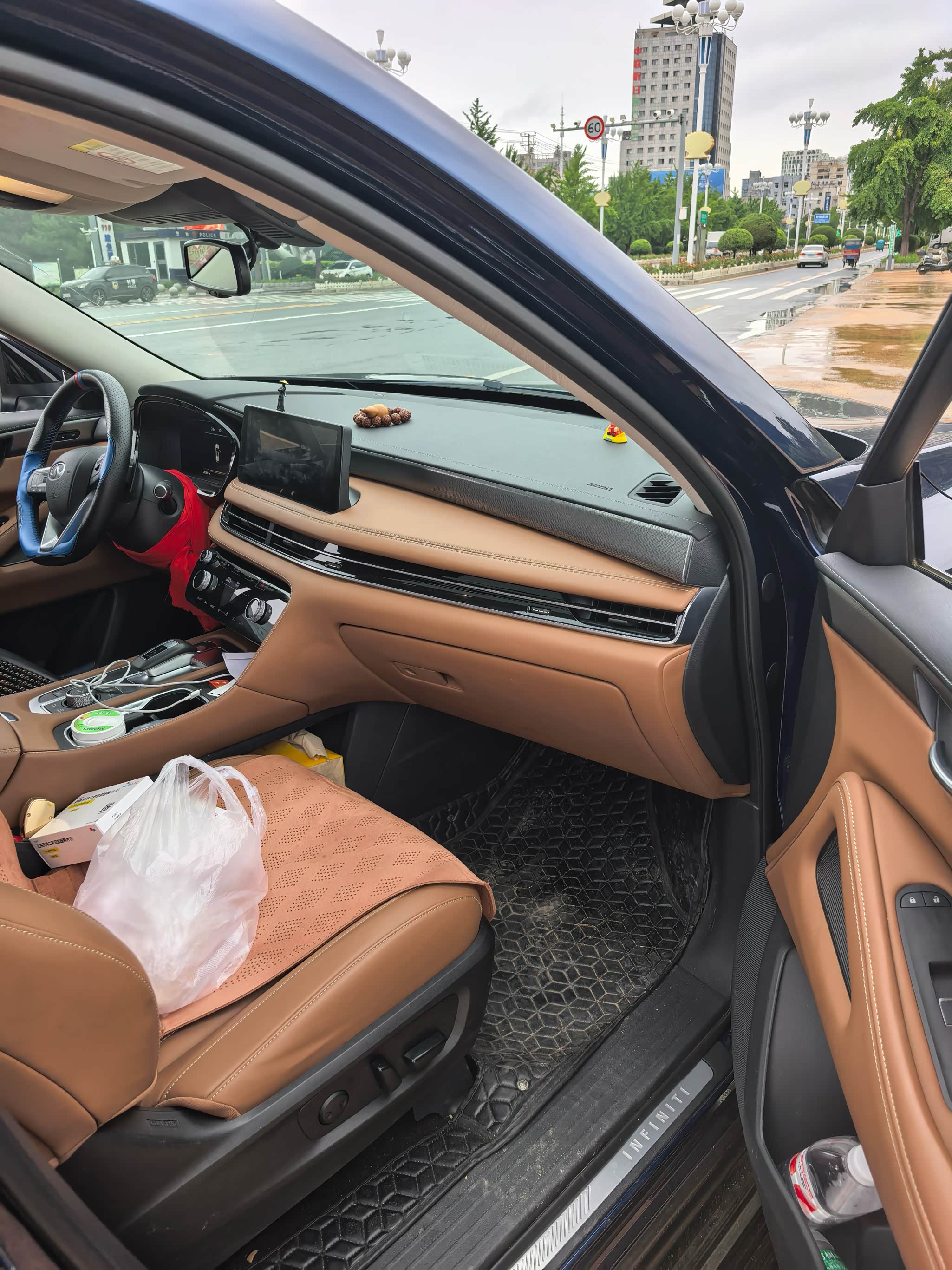 我这台车的内饰我很喜欢,不愧是日产的高端车型,坐在车里到处都是软软的,加上我选的是这种棕色的内饰搭配,不仅耐脏而且看着也更年轻了。