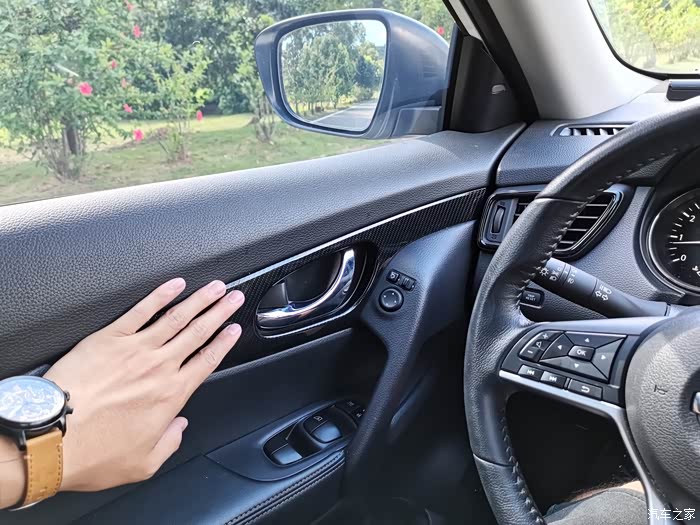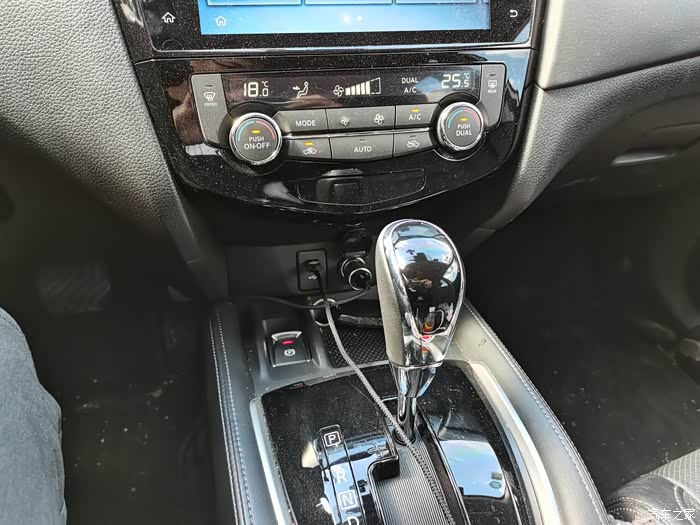 奇骏的内饰细节还是做的很到位,调节转换四驱模式的按钮,方便实用。但个人觉得这个四驱调控设计在这个位置,我个人觉得有点靠后,用起来就不太顺手。当然也可能是我个人还没习惯的原因吧!