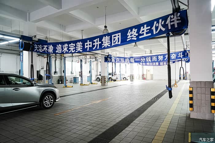 4S店的维修车间可真没少见,如此整洁干净的,我还是第一次见,当然了如果没有上方的横幅,我会更喜欢。