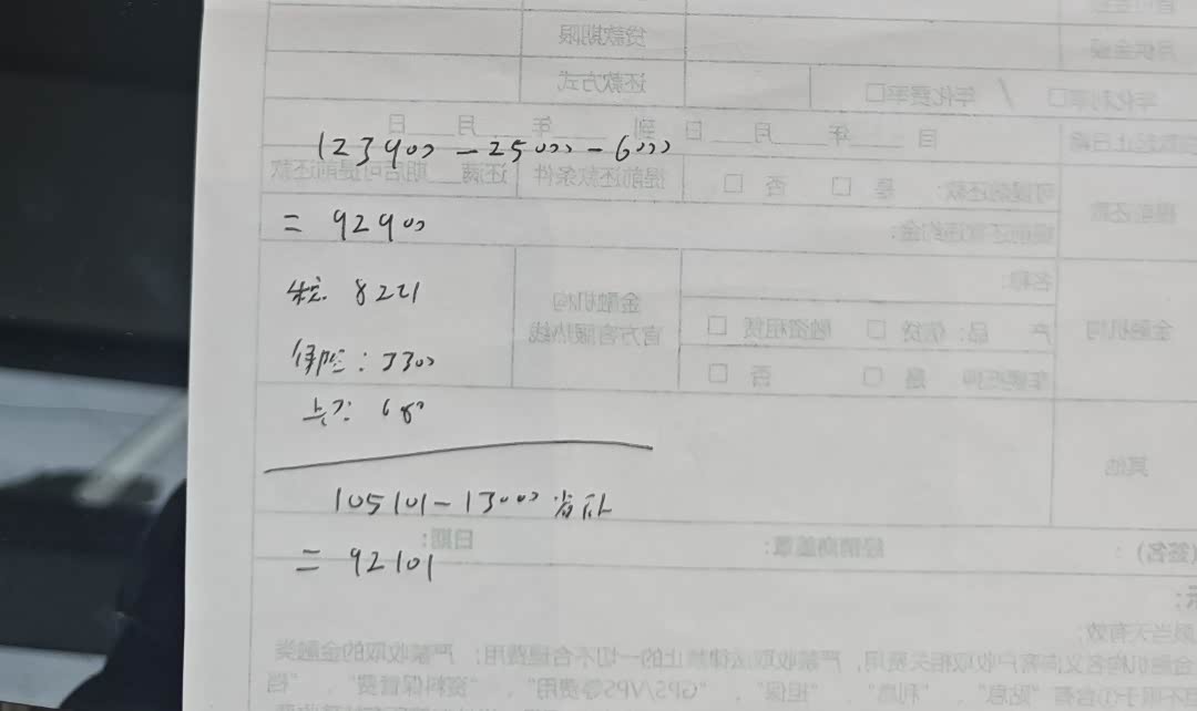 定好买哪个车以后,随后就是9月20日左右去店里与销售唇枪舌战、阴谋阳谋、正面交锋,最终谈到现金优惠2.5W,旧车置换厂家补贴0.6W,购置税8221元、保险3300元,上牌680元,落地10.5W,我的旧帝豪车给我折旧5千元(后来感觉有点被坑了),山西省的省补1.3W截止2025年12月2日还未到账。这个价格下来整体感觉还算比较满意。