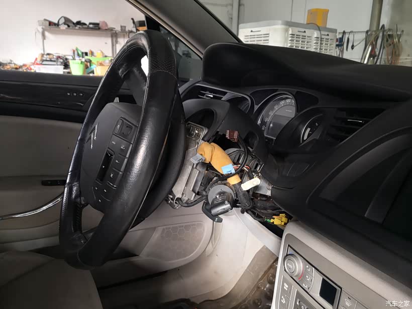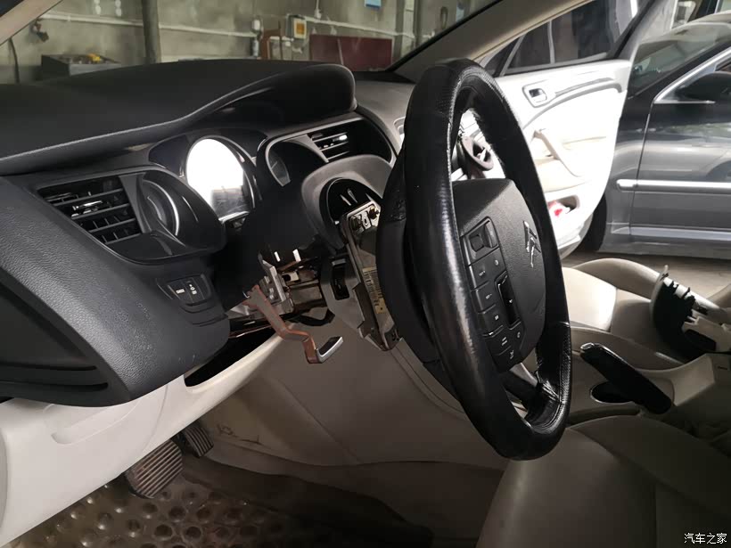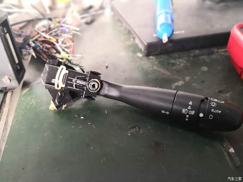 驱车去了这家修理厂,师傅听了俺关于故障现象的描述后开始拆卸组合开关进行检查,不得不说C5方向盘下方这个部位还真不太好拆,而且大灯和雨刮的控制全部集成于一块控制板,线束插口也比较多,如果是自己动手拆装,估计没有把握搞定。