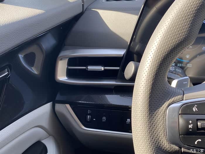 方向盘两侧的按键操作方便,方向盘设计也挺轻便的。