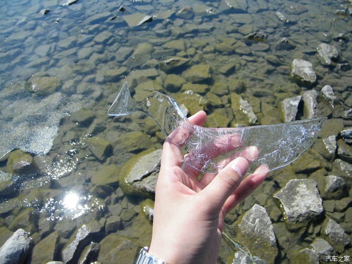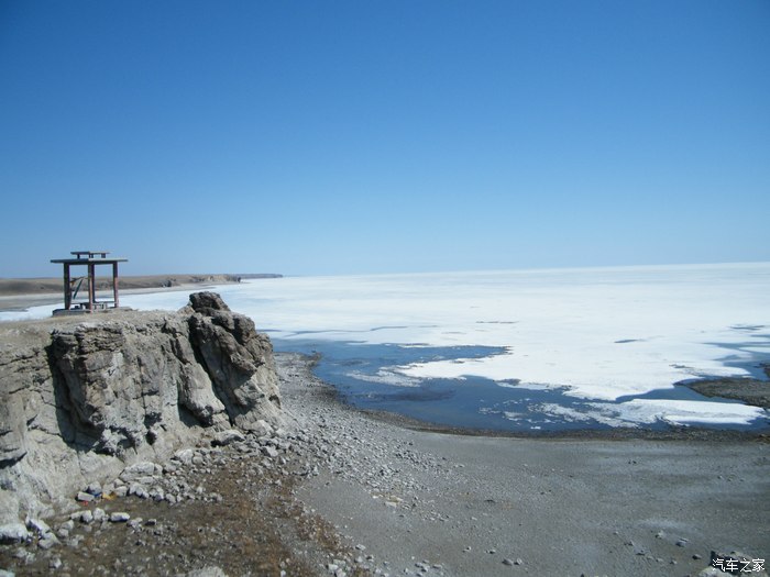 4月的达赉湖还没解冻,岸边只解冻了一点点,看看像什么?水很清哦!