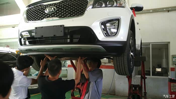 提车时,拆下护板检查发动机。