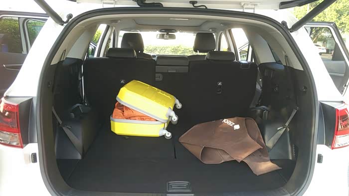 第三排座椅放倒空间很大,请忽视拉杆箱。
