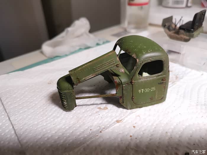 用的灰色补土打底,地盘喷黑,其他喷橄榄绿