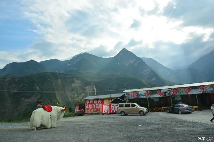一路上车多路窄,基本没停车。印象比较深的两次,一次是去如厕,一次是在观景台上看牦牛和沿途的岷江。