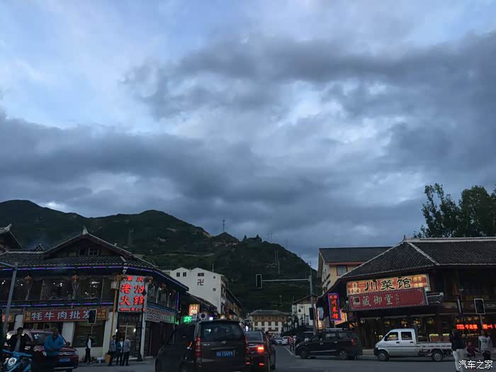 天色越来越暗,而路程还是那么长。两个人都在寻思:万一天黑路不好走……万一一会儿被困在大雨里(走到后半段时,头顶上方几乎都是乌云密布,“大雨”简直一触即发)……万一太累扛不住……怎么办?在路上随便找个旅店住住几乎是下下策——太不安全,所以怎么也要撑到九寨附近的漳扎镇。