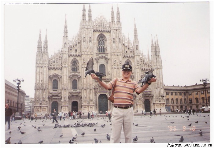 我在米兰大教堂外喂鸽子(50里拉买的玉米);米兰大教堂:位于市中心,是中世纪伟大的哥特式建筑之一(与法国巴黎圣母院齐名),是欧洲最大的哥特式大理石教堂;1386年奠基,1813年竣工,1965年最后完成,历经近600年;设计精美、结构复杂,巍峨壮丽、举世无双;