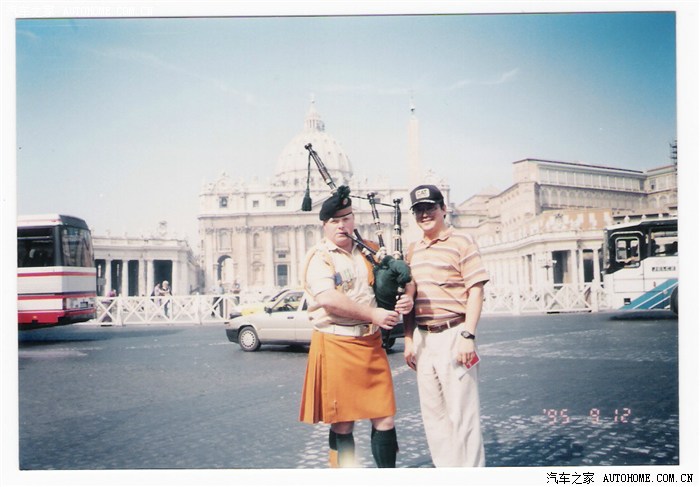 我在梵蒂冈国圣.彼得大教堂外与苏格兰风笛手合影;