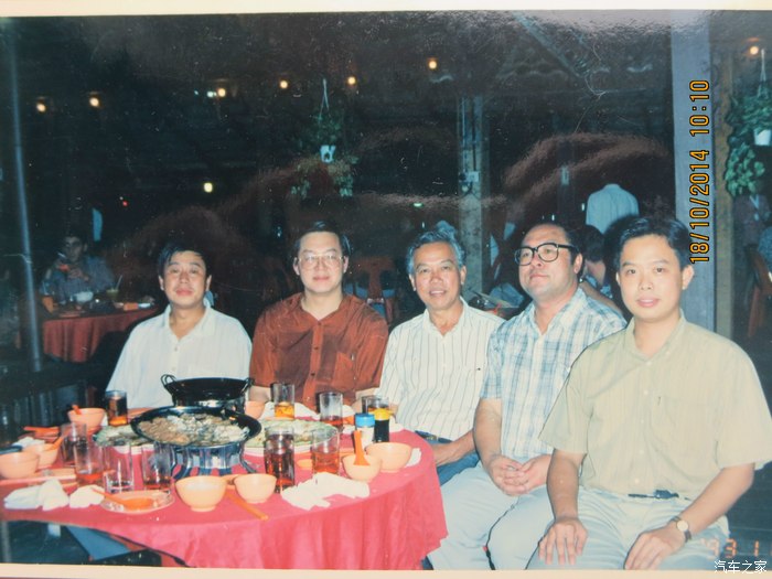 20年前(1996年)在吉隆坡,工业五金有限公司总经理林崇生先生(中;当年57岁,也是我的老朋友)宴请我和国内厂长(右边是林总经理的三子林毓峰先生,当年25岁); 2014年在吉隆坡,我、夫人与王董事长(83岁)、林总经理(75岁)及王董事长助手陈先生夫妇合影;