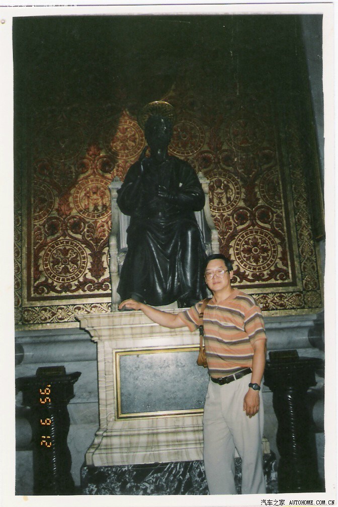 我在圣.彼得大教堂耶稣雕像前留影(排好长时间的队,才摸到耶稣的右脚拇指,据说能给人带来好运);