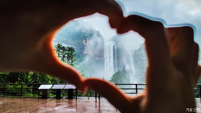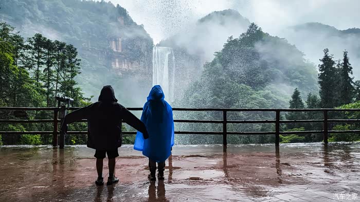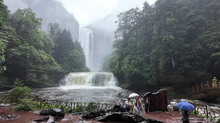 天气好的时候可以沿着山脚的栈道走到瀑布的正下方,还可以爬山到达瀑布的顶端,但是当天因为雨确实太大了,所以望乡台瀑布的水量也特别大,水声震耳欲聋,加上风大雨大,实在是不适合徒步,而且爬上瀑布顶端单程需要约40分钟,所以大家一致同意不去爬山。