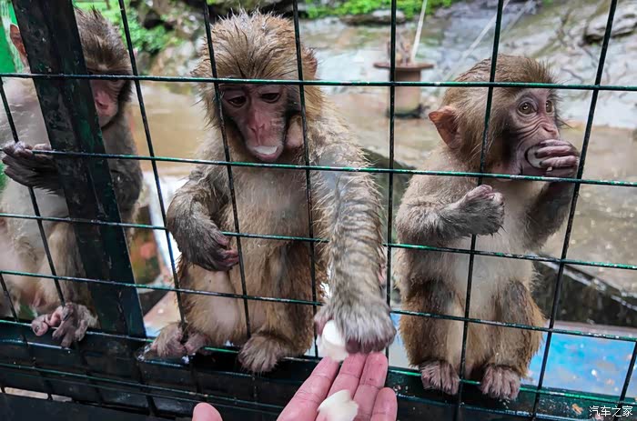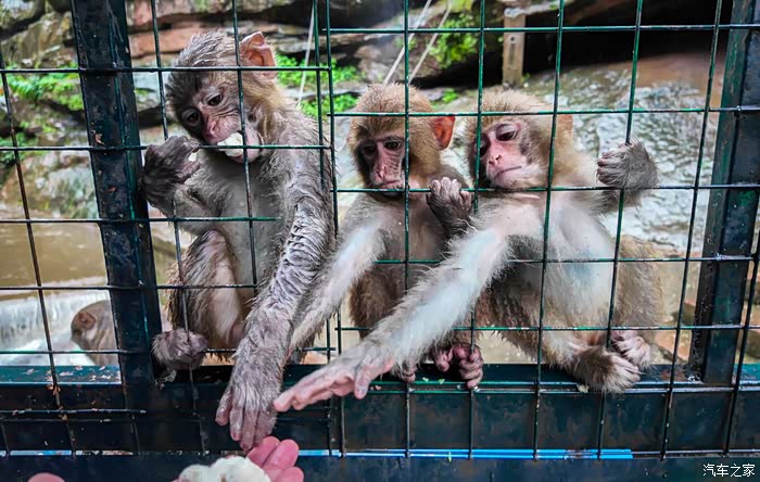 船停猴岛之后工作人员提示要轻装上阵,不要把零食露出来,不然容易引起猴群的哄抢。下船之后步行几分钟就到达了猴岛的猴群聚集区,沿途可见零散的猴子在栏杆上在追逐打闹,但是当我们到达投食区的时候,我们被吓到了,几十只猴子在一片空地上抢夺实物,而游客则不知道是因为下雨的原因还是害怕的原因都蜷缩在一片屋檐下,而投食区则是为游客准备的一个笼子,进去之后把门关好,从笼子里面给笼子外的猴子投食,总感觉什么地方乖乖的。其实有些小猴子并不像想象中的那么凶,甚至非常可爱,伸着小手向你要米果,或者你可以把米果摊在手上,让它自己来拿,特别有意思。不过猴岛的游览乐趣也就在此,就是喂猴子。