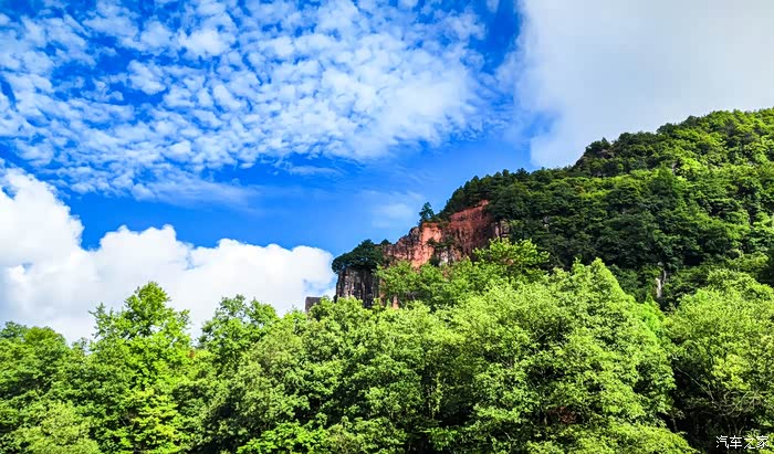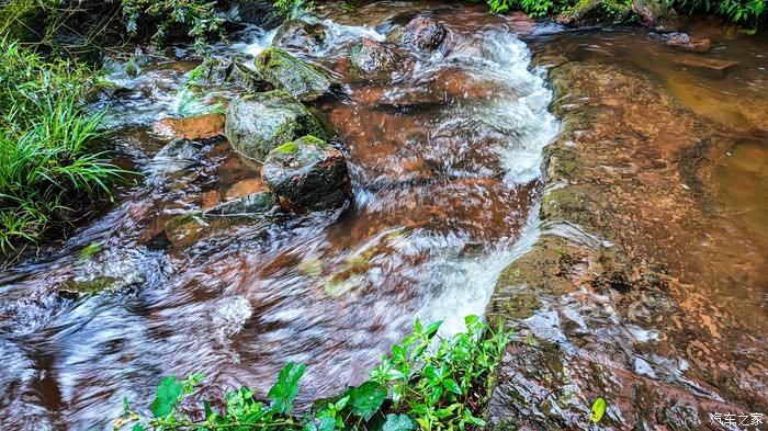 出了望乡台瀑布再往东门方向走,途观L行驶在四面山景区的山间,山路崎岖,但是途观L的动力和转向都能轻松应对。山里的空气非常清新,植被非常茂盛,车行山间如同在森林里行驶一般,甚至还有一段在山体内部行驶,看着头顶上的红色岩石以及瀑布,感觉颇为壮观。