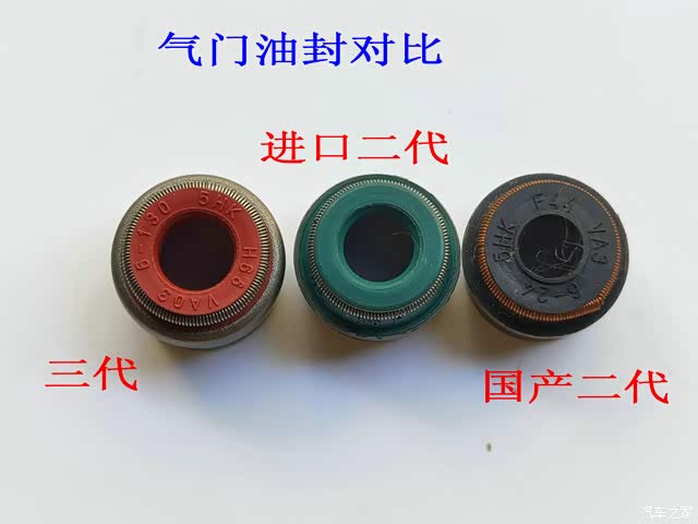 而三代的气门油封,选用了红色的氟硅胶,结构设计上增加了一道密封环节,所以油封的高度也增加了。耐油性耐高温密封性比二代的应该有了很大的提升。