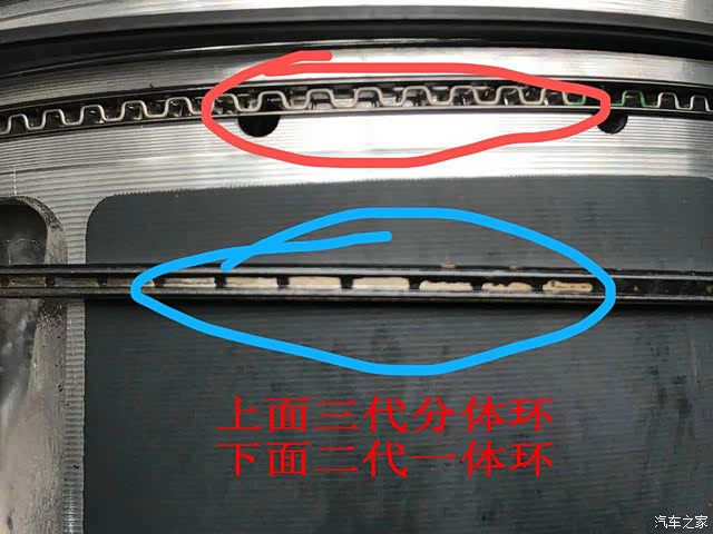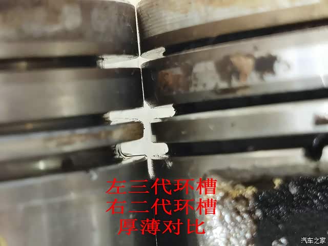 而比如我朋友修理厂大修时,为了节约成本,一般都采用二代的活塞总成,加一套三代的品牌活塞环处理。因为三代的原厂活塞环厚,不能安装到二代的活塞上。