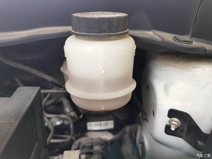 至于发动机的三液,其实也很简单,我们只需要知道怎么看就行了,刹车油在AX7机舱的右上方小壶里面,液位正常,颜色清透就可以了,冷却液在机舱左侧的圆壶内,我们看冷却液的液位是不是正常就行了,如果低于下位线,立马去店里检查一下是不是有漏液的情况,我的风神AX7检查过很多次了,液位都很正常。