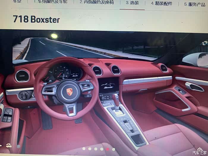 1.波尔多红真皮内饰(30500元):必选。一开始我也有打算为了省钱干脆内饰也选免费的黑色内饰,一黑到底,后来决定选了红内,选完真的不后悔,无论是摸下去的质感还是观感都很赞,一进入到车内就很有战斗欲望,这个钱花的值。但是车身颜色选了卫红、胭脂红、熔岩橙、迈阿密蓝等亮色的酌情选择,外面亮色里面红内的话,敞篷后从外面看视觉效果其实一般。切记,选了红内的,一定不要选GT运动方向盘,选了后方向盘中心会变成黑色,相当难看!