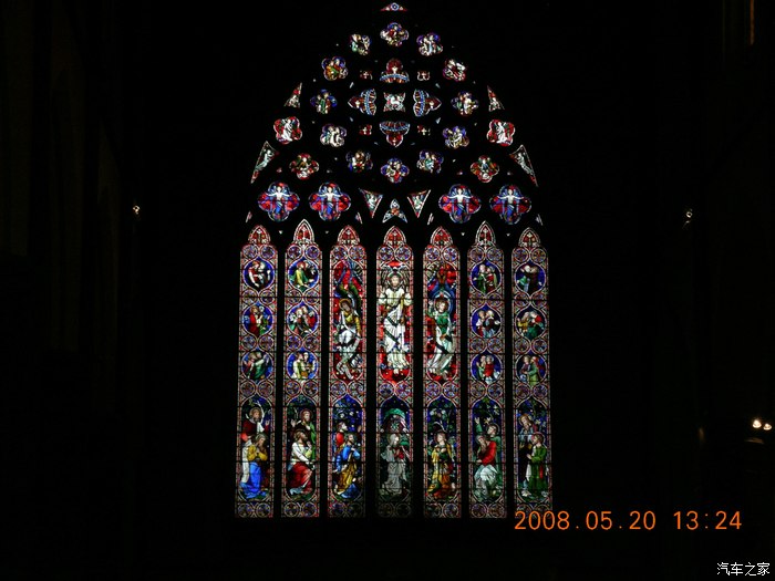 圣派翠克教堂的彩绘玻璃窗。奇妙的是从外面看只是普通玻璃,但从里面看到的是彩绘圣经故事