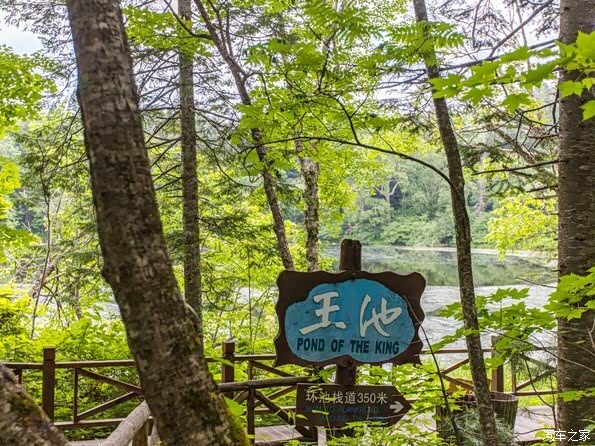 从鸢尾公园到王池的距离,足有1050米。王池位于长白山西坡,是由岩浆喷发形成的火山口,汇聚着地表水而形成近圆型的火山口湖,北侧则为高山桦林,南侧则为大片的草地,有着两种不同的环境。王池里的美景,十分的好看,也很壮观,让人大饱眼福,一池子的水质十分的洁净,水池的旁边长满了野草,四周更是许多高大的树木笼罩着,形成圆形的形状。