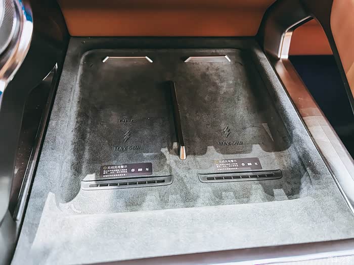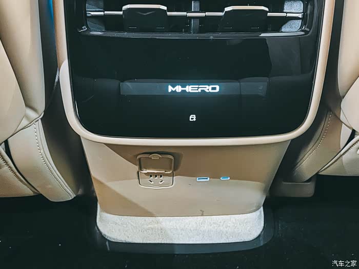 后排有很多充电口,中央扶手还是有冰箱。