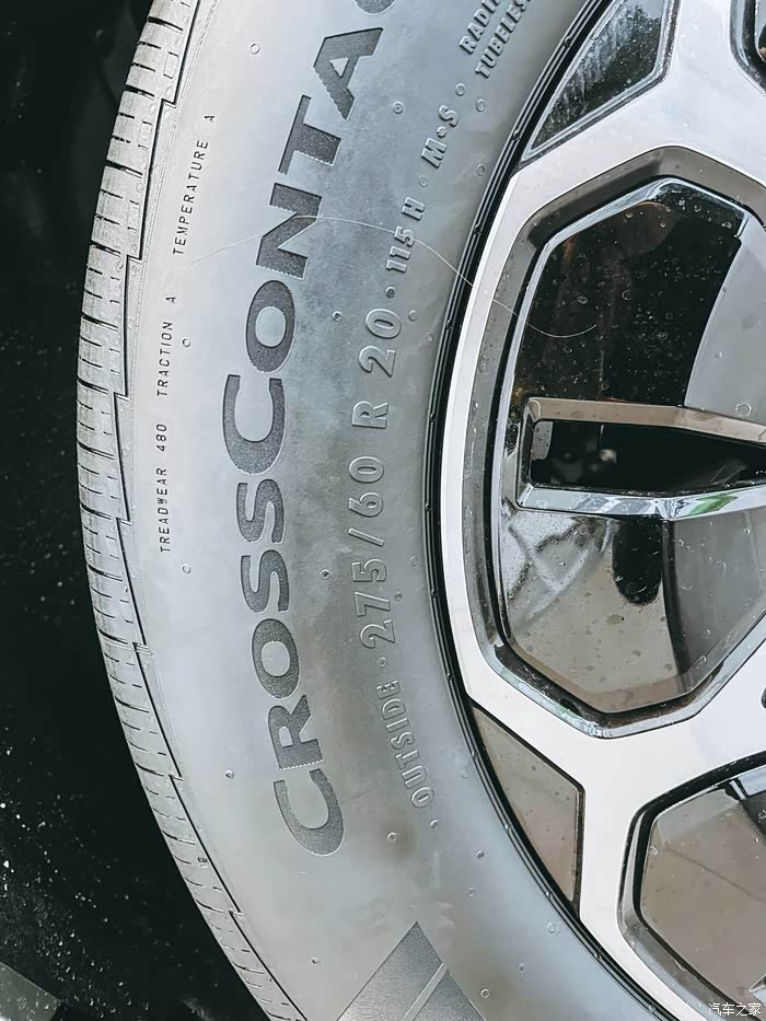 车轮尺寸非常大,花型双色轮毂造型帅炸了。我们可以看见车轮上方明晃晃的铝合金叉臂,这款车可是前后双叉臂底盘,搭配了CDC和空气悬挂。而且空气悬挂针对越野性做了强化设计,完全不必担心它在越野中会拖后腿。