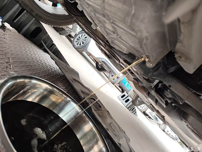 第一步肯定是把车子架起来。。换变速箱油,如果不拆油底壳的话,尽量还是保持车子放平才能放的干净。